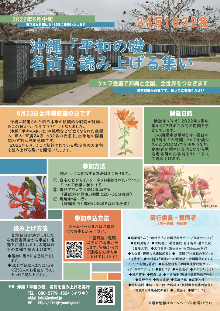 いきなりですが、調査活動の状況をブログで公開しよう!という話になり、まずはこれまでの経緯をまとめておきたいと思います。2023年の「平和の礎」お名前を読み上げる集いの最新情報も随時お伝えしていきたいと思います。